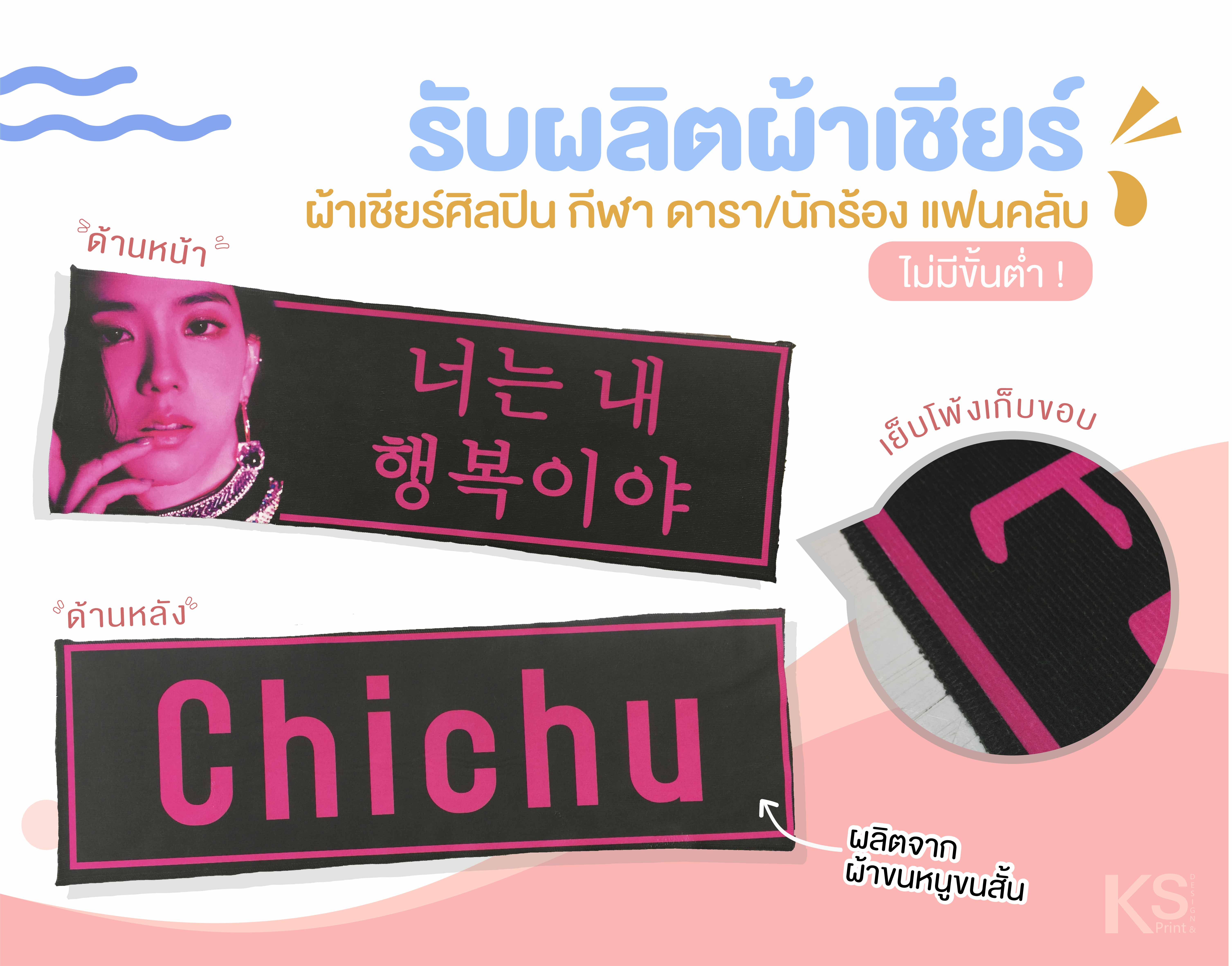 บริการพิมพ์ผ้าขนหนู ผ้าเชียร์พิมพ์ลาย เหมาะสำหรับเป็นของแจก ของที่ระลึก พิมพ์ลายสำหรับแฟนคลับนักแสดง นักกีฬาหรือบุคคลที่ชื่นชอบ หรือถพิมพ์โลโก้ ชื่อ แบรนด์ ของธุรกิจหรือองค์กรของคุณ เพื่อใช้ในส่วนต่างๆ ได้ และยังนิยมไปใช้ในงานกีฬา งานมาราธอร อีกด้วย